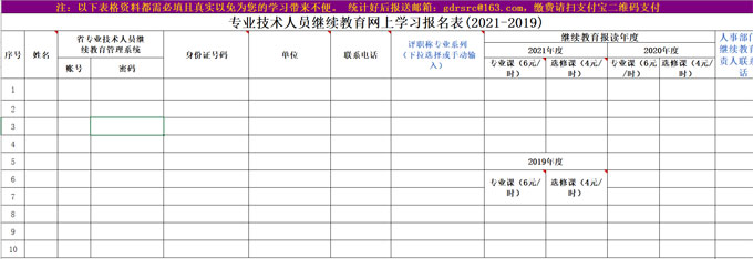 4、學(xué)員填寫好報(bào)名表之后,掃描表格后面支付二維碼,支付完成后發(fā)送繳費(fèi)成功憑證和報(bào)名表到郵箱:gdrsrc@163.com,學(xué)員報(bào)名成功后一個(gè)工作日,施教機(jī)構(gòu)為學(xué)員開通學(xué)習(xí)賬號(hào)。