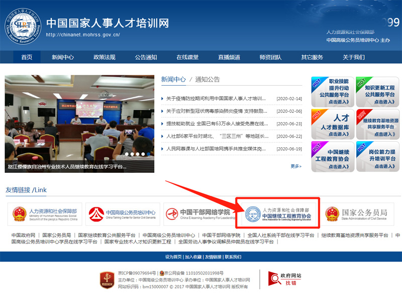 我們可以通過人力資源和社會保障部直屬單位中國國家人事人才培訓網官方網站直接進入到 中國繼續工程教育協會!