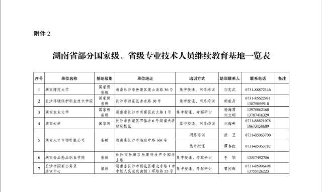 附件二:湖南省部分國家級,省級專業技術人員繼續教育基地