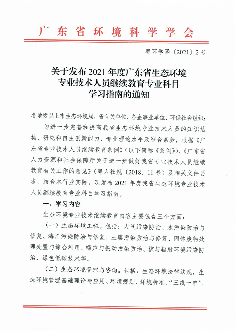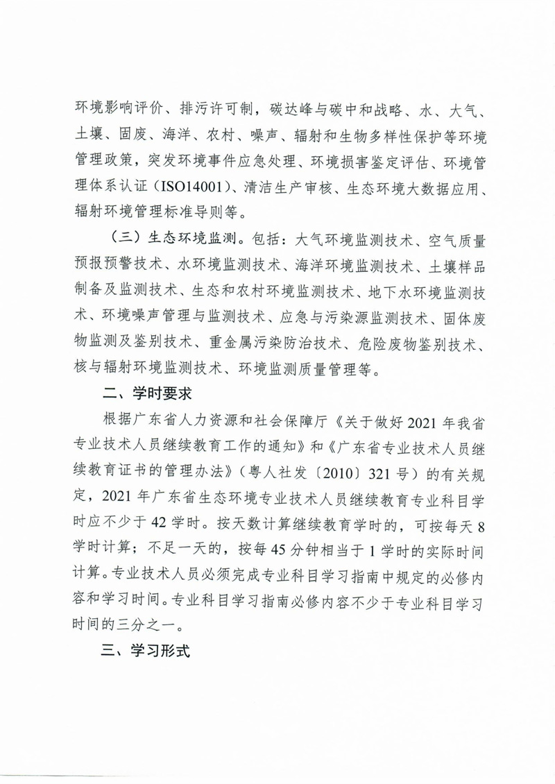 關于發布2021年度廣東省生態環境專業技術人員繼續教育專業科目學習指南的通知