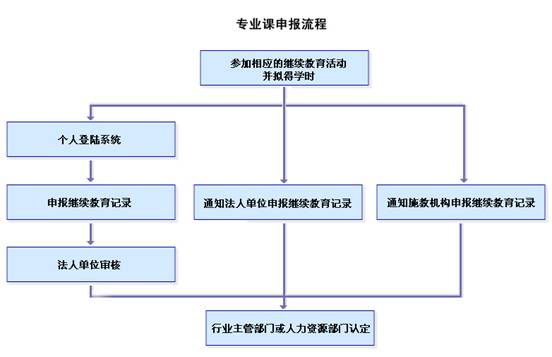 公需科目必須到人社部門備案的施教機構或經省人力資源和社會保障廳繼續教育處監制的學習網站進行培訓。 | 專業科目必須到人社部門備案的施教機構或行業主管部門承認的培訓機構進行學習、培訓。 | 沒有指定的施教機構,可以是單位的集中培訓學習,也可以是專技人員自學。 | |