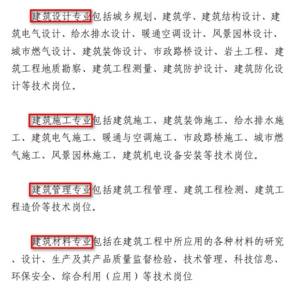 建筑工程技術(shù)人才職稱設(shè)置建筑設(shè)計(jì)、建筑施工、建筑管理、建筑材料四個(gè)專業(yè)。以下是各專業(yè)技術(shù)崗位詳情: