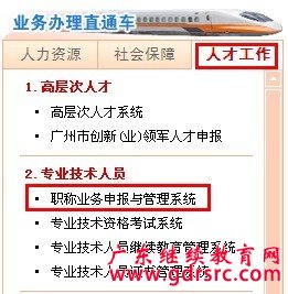 答:進入中國廣州人事網,從“業務直通車→人才工作”欄目中選擇“職稱業務申報與管理系統”進行訪問,或者點擊這里直接登陸。