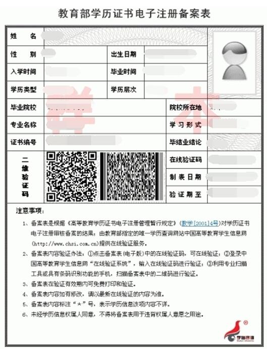 答:應下載打印有二維碼的版本,即該網站提供的《教育部學歷證書電子注冊備案表》(模板見圖三)。