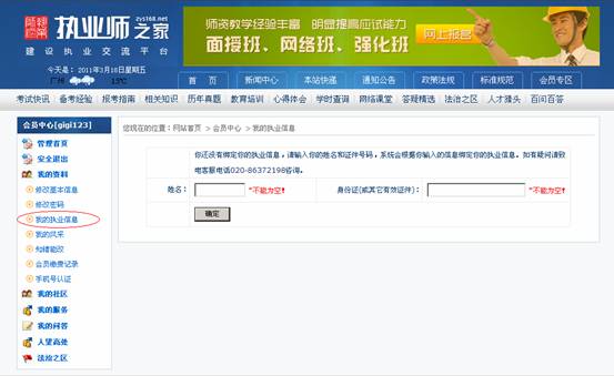 2、個人用戶注冊登錄:已經綁定執業信息的注冊執業師可選擇輸入身份證號碼快速登錄,進行網上報名、網上支付、打印學習憑證。未注冊用戶可免費注冊。(圖1)