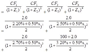 The current price should be calculated using cash flows discounted at appropriate spot rate plus corporate spread: . \1 z2 R- d0 n0 W2 \3 M2 e