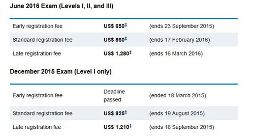 注冊費(Enrollment Fee):只需第一次注冊CFA考試時繳納,即意味著在報考二級、三級考試時無需再繳。