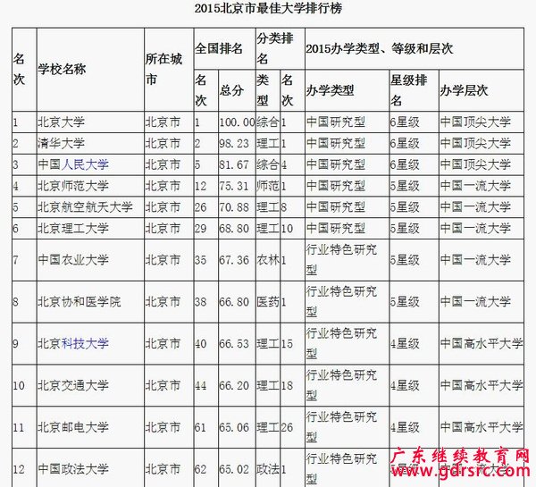 1.北京大學 2.清華大學 3.中國人民大學 4.中國農業大學 5.北京師范大學 6.北京航空航天大學 7.北京理工大學