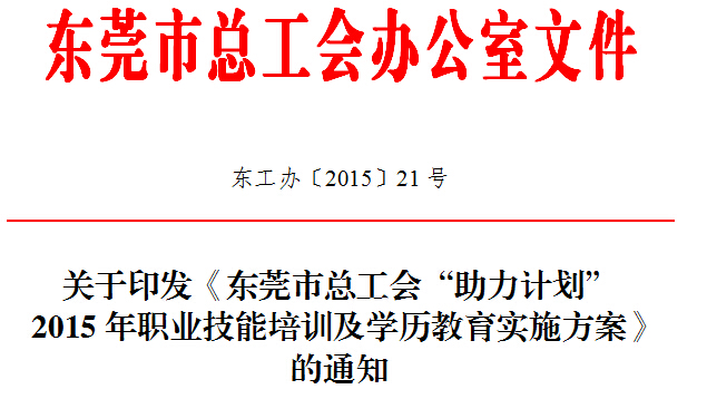 東莞市總工會(huì)“助力計(jì)劃”2015年職業(yè)技能培訓(xùn)及學(xué)歷教育的具體工作由助力計(jì)劃東莞服務(wù)中心組織實(shí)施。