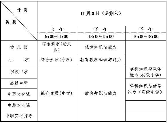 2018年下半年中小學(xué)教師資格考試(筆試)日程安排表