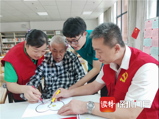 2019年9月30日,工作人員作為黨員志愿者陪伴長者進行迎國慶手繪活動