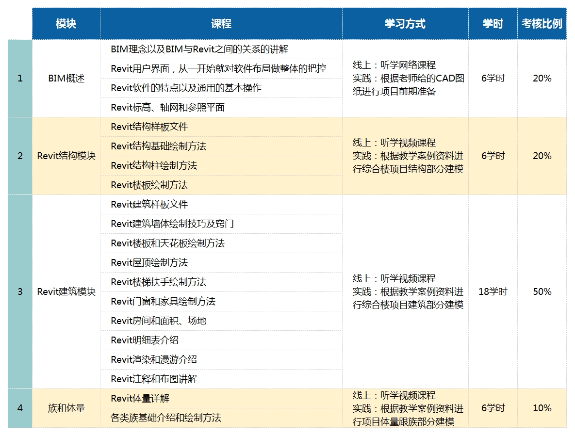 BIM技能實操-REVIT軟件應用(初級)課程幫助無BIM工作經驗的學員以及基礎薄弱的學員從零基礎學習revit軟件操作,結合實際案例講授revit建模實際技能,解決學員實操經驗不足的問題,切實滿足人才培養的真正需求。